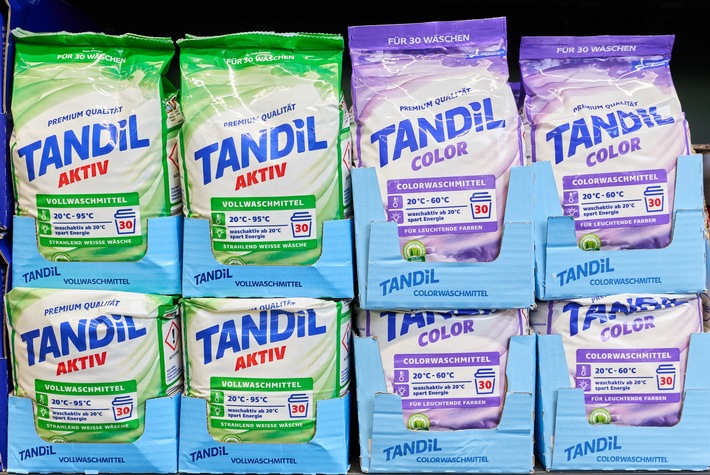 Ausgezeichnete Qualität ist bei ALDI keine Frage des Geldbeutels. Die Eigenmarke TANDIL hat sich in der April-Ausgabe von Stiftung Warentest gegen verschiedene Marken wie Weißer Riese, Spee oder Lenor deutlich durchgesetzt. Das Pulver Vollwaschmittel TANDIL Aktiv von ALDI erhielt die Gesamtnote „Gut (1,9)“. Mit seiner sehr guten Reinigungsleistung entfernt es selbst die hartnäckigsten Flecken und sorgt dafür, dass die Wäsche frisch und strahlend bleibt – und das zu einem unschlagbaren Preis von nur 16 Cent pro Waschgang.