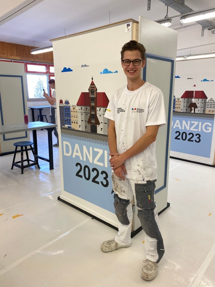 Janick Mensinger hat den Bundesleistungswettbewerb, die Deutsche Meisterschaft des Maler- und Lackiererhandwerks, gewonnen. Der junge Mann ist für Hessen angetreten und hat 13 andere Teilnehmer und Teilnehmerinnen hinter sich gelassen.