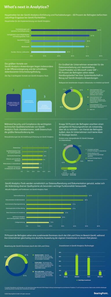 Frankfurt am Main (ots) – 42 Prozent der Teilnehmenden einer neuen Studie der Unternehmensberatung BearingPoint verwenden oder testen bereits weitreichend GenAI im Bereich Data Analytics (GenAI Analytics) in ihren Unternehmen. GenAI Analytics bietet enormes Potenzial zur Effizienzsteigerung und Automatisierung datengetriebener Prozesse. Doch viele Unternehmen stehen bei der Umsetzung noch am Anfang – und kämpfen mit...