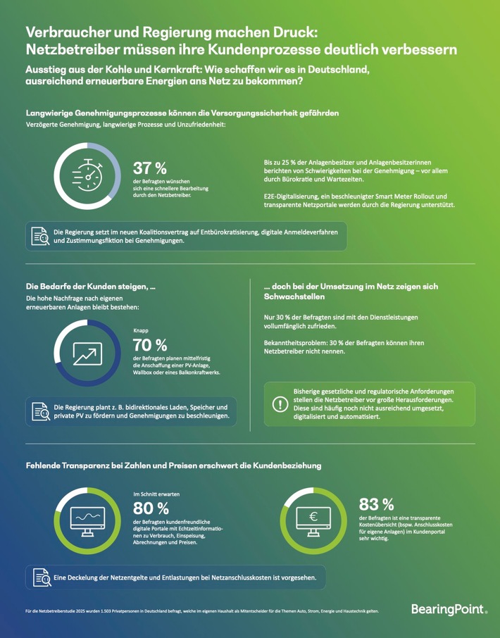 Netzbetreiberstudie 2025 von BearingPoint offenbart das Fehlen vollständig digitalisierter Prozesse sowie Schwachstellen beim Kundenkontakt und der Sichtbarkeit von Netzbetreibern – Handlungsdruck wächst.